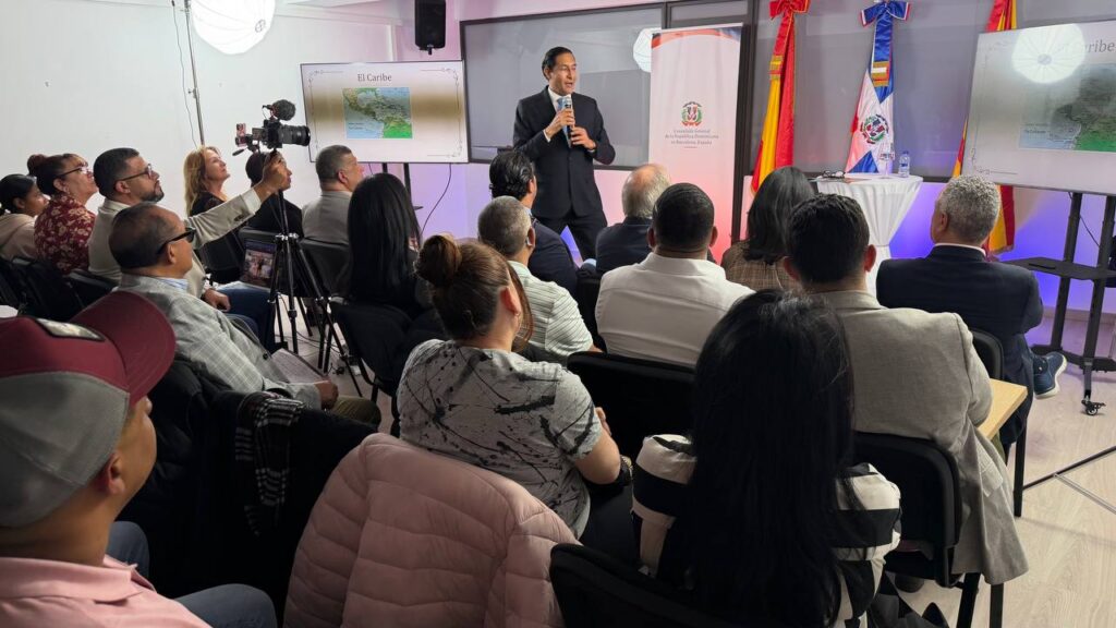 Barcelona, 10 de marzo. – En el marco de la segunda edición de la Semana del Orgullo Quisqueyano, celebrada el pasado mes de febrero con motivo del 182 aniversario de la Independencia Nacional, el Consulado General de la República Dominicana en Barcelona acogió la conferencia “Visión Geohistórica de la República Dominicana”, impartida por el embajador y profesor dominicano Iván Gatón.